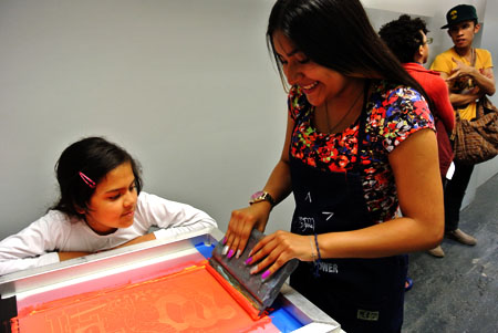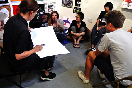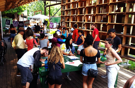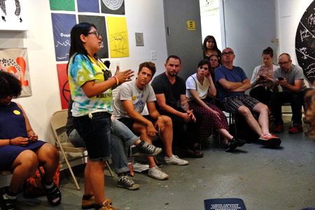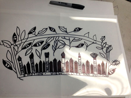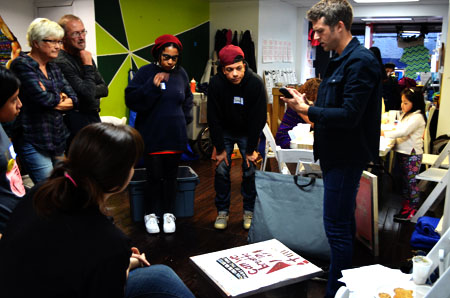 This workshop explored our unique methodology for creating socially engaged art and participatory design. Participants were introduced to our eight principles, their meaning, and how to take that out into other socially engaged work. The workshop also included collaborative image creation, silkscreen instruction, and the printing of several new MPP graphics.