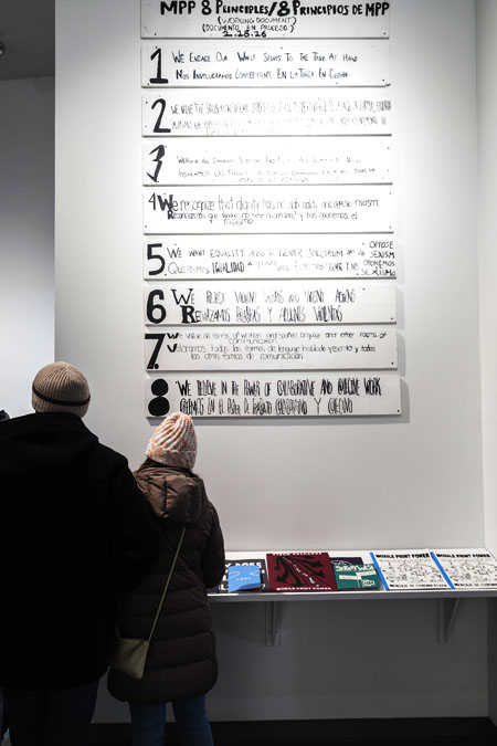 In this workshop, MPP worked with two students groups from MECA to provide examples of how we created our own 8 Principles. Interference Archive also provided material and background on other group’s own principles, such as the Black Panthers, Young Lords, and Muhammad Ali’s 6 Core Principles.