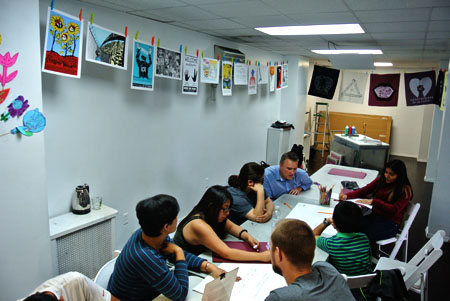 In this workshop, MPP & ELNYA focused on the question "Can You be an Artist Part of the Time?" The workshop included conversation, image creation, and printing of MPP's past work focused on this topic. Additionally due to the timing of the workshop we took a meaningful look into how and when we create or support creation.