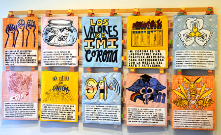 In 2014, the IMI Corona Community Council developed a series of values to guide the work and vision of IMI Corona. To support this work, we hosted a series of collaborative design and screen printing workshops at IMI Corona, inviting the larger IMI Corona community to turn the recently published values into a visual work. The final work developed in this collaboration (a large quilt created in collaboration with Mary Papsco) was permanently installed at IMI Corona in fall 2016.
